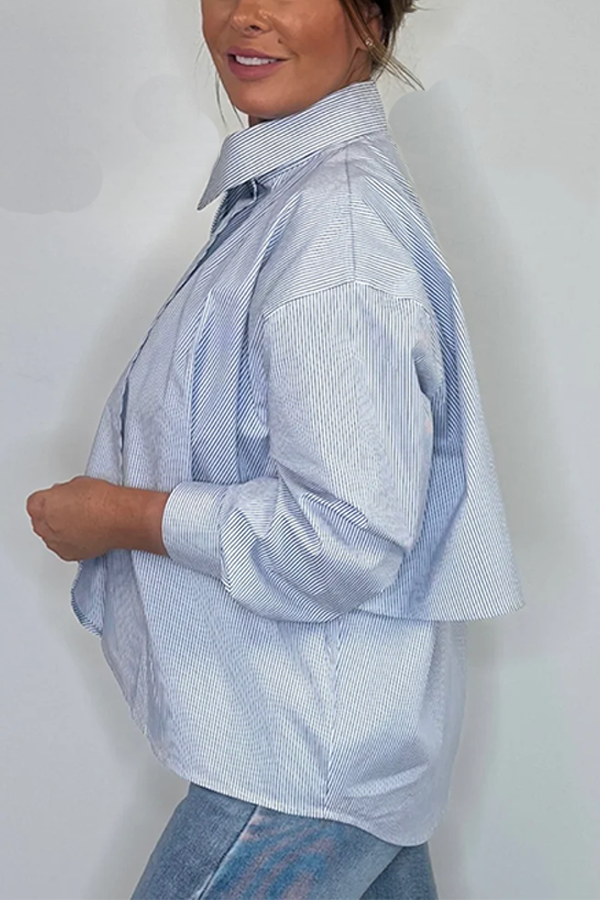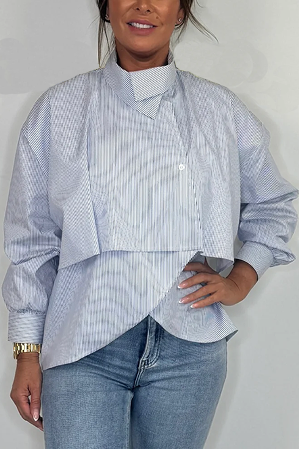 High Neck Pinstripe Tiered Shirt