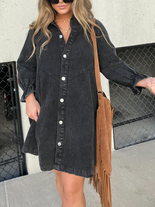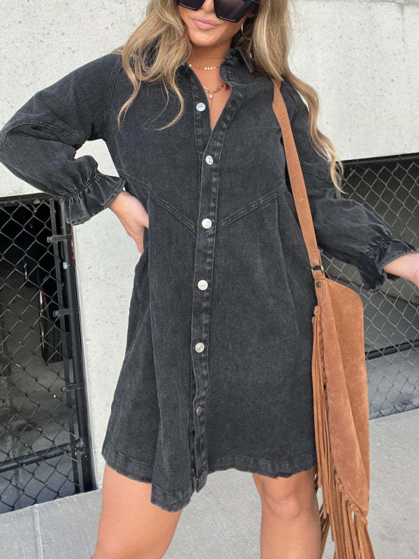 Long Sleeve Black Downtown Denim Shirt Dress