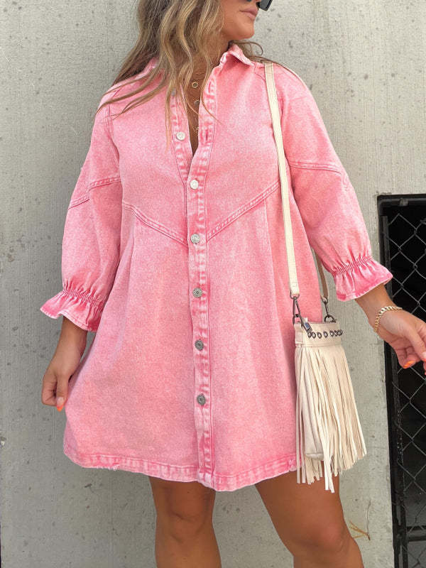 Long Sleeve Pink Downtown Denim Shirt Dress